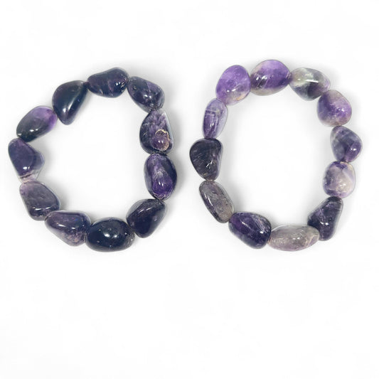Amethyst Tumbled Stone Bracelet | Natural Purple Crystal Healing Jewelry | Adjustable Unisex Gemstone Bead Bracelet | Promotes Calmness