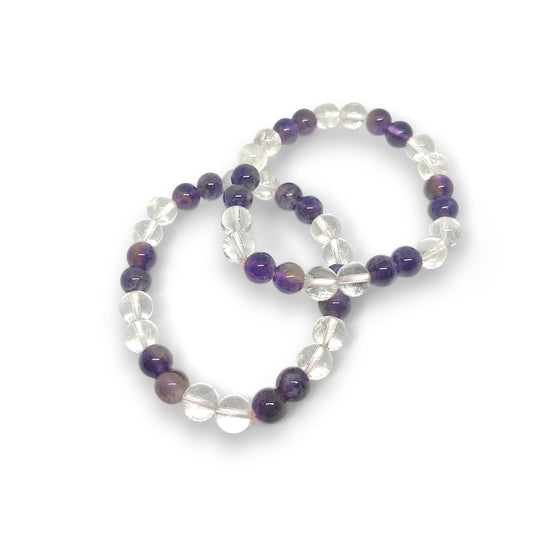 Amethyst & Clear Quartz Bracelet | Spiritual Growth | Stress Relief | Energy Amplifier | Healing Crystals