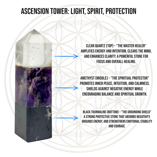 Ascension Crystal Tower, Clear Quartz Amethyst Black Tourmaline, Master Healer, Spiritual Protection, Grounding, Energy Cleansing, Gift
