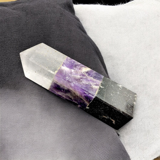 Celestial Guardian Crystal Tower, Clear Quartz Amethyst Black Tourmaline, Healing Stone, Protection, Grounding, Meditation Gift, Spiritual