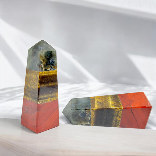 Triple Energy Crystal Tower | Labradorite Tiger Eye Jasper | Healing Wand | Grounding Stone | Protection Crystal | Manifestation Tool