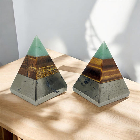 Trinity of Fortune Pyramid, Abundance Crystal Pyramid, Green Aventurine, Tiger Eye, Pyrite, Wealth, Prosperity, Money Manifestation Gift
