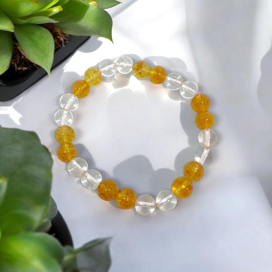 Natural Citrine and Clear Quartz Bracelet | Abundance & Clarity | Energy Amplifier | Stretch Fit