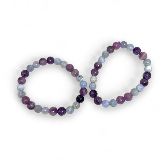 Lepidolite and Blue Lace Agate Bracelet | Calming Crystal Jewelry | Stress Relief & Emotional Healing