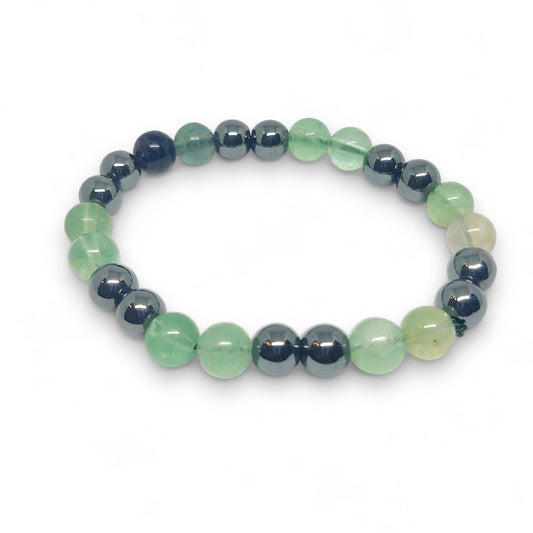 Green Fluorite and Hematite Bracelet | Wealth & Protection | Abundance Magnet | Healing Crystals