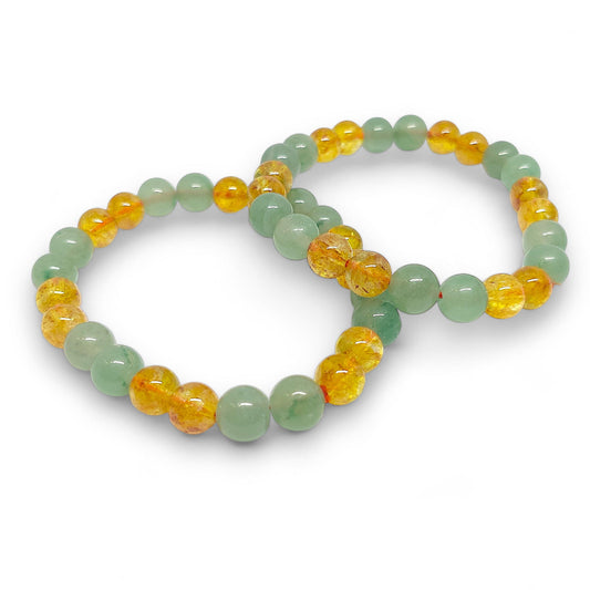 Green Aventurine and Citrine Bracelet | Prosperity & Luck | Natural Healing Stones | Stretch Fit