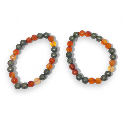 Carnelian with Pyrite Bracelet | Natural Energy Boost | Confidence & Prosperity | Adjustable Fit
