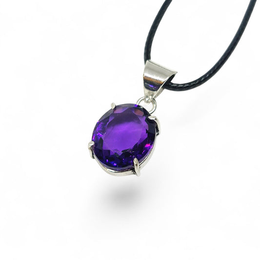 Oval Amethyst Pendant Necklace in German Silver | Purple Gemstone Jewelry | Healing Crystal Gift | Boho Chic Style | Unique Handmade Charm