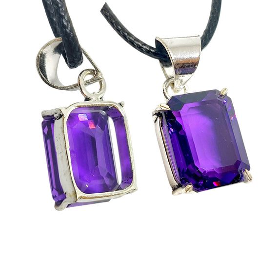 Emerald Cut Amethyst Pendant | German Silver Necklace | Purple Gemstone Jewelry | Healing Crystal Gift | Elegant Handmade Charm | Certified.