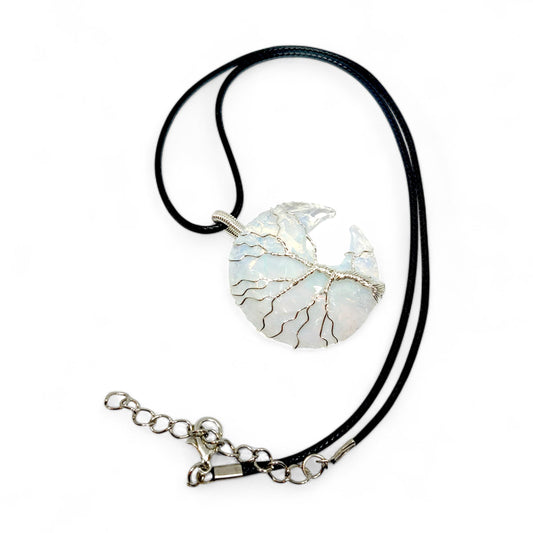 Opalite Moon Pendant | Tree of Life Wire Wrapped Necklace | Handmade Crystal Jewelry | Spiritual Gift | Gemstone Charm | Boho Accessory