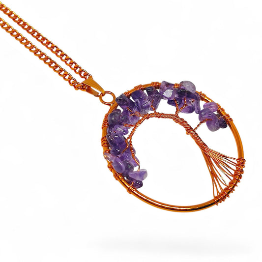 Copper Tree of Life Pendant | Amethyst Gemstone | Handmade Jewelry | Spiritual Gift | Healing Crystal Necklace | Wisdom Symbol | Spiritual
