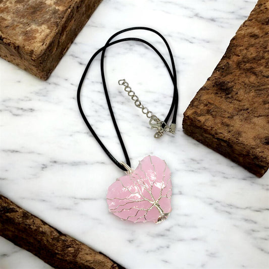 Pink Opalite Moon Pendant | Tree of Life Wire Wrapped Necklace | Handmade Crystal Jewelry | Spiritual Gift | Unique Gemstone Charm | Boho