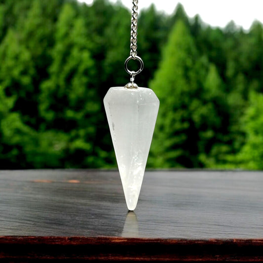 Selenite Faceted Pendulum | Crystal Dowsing Tool | Divination Instrument | Healing Stone | Meditation Aid | Spiritual Gift | Reiki Energy