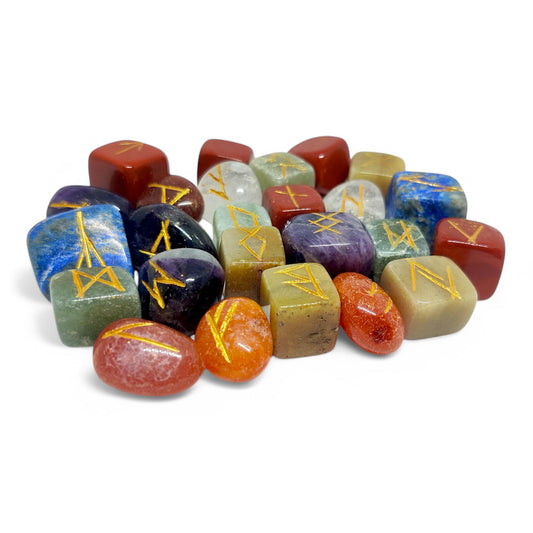 Seven Chakra Rune Set, Mixed Gemstone Runes, Elder Futhark Runes, Divination Tools, Chakra Balancing, Wiccan Altar, Spiritual Gift, Runic