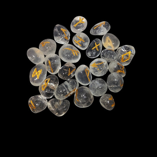 Clear Quartz Rune Stones Set | 25 Polished Elder Futhark Runes | Crystal Divination Tools | Spiritual Gift with Velvet Pouch